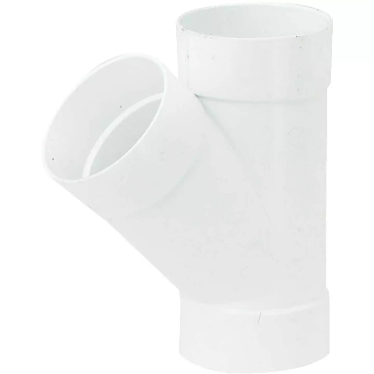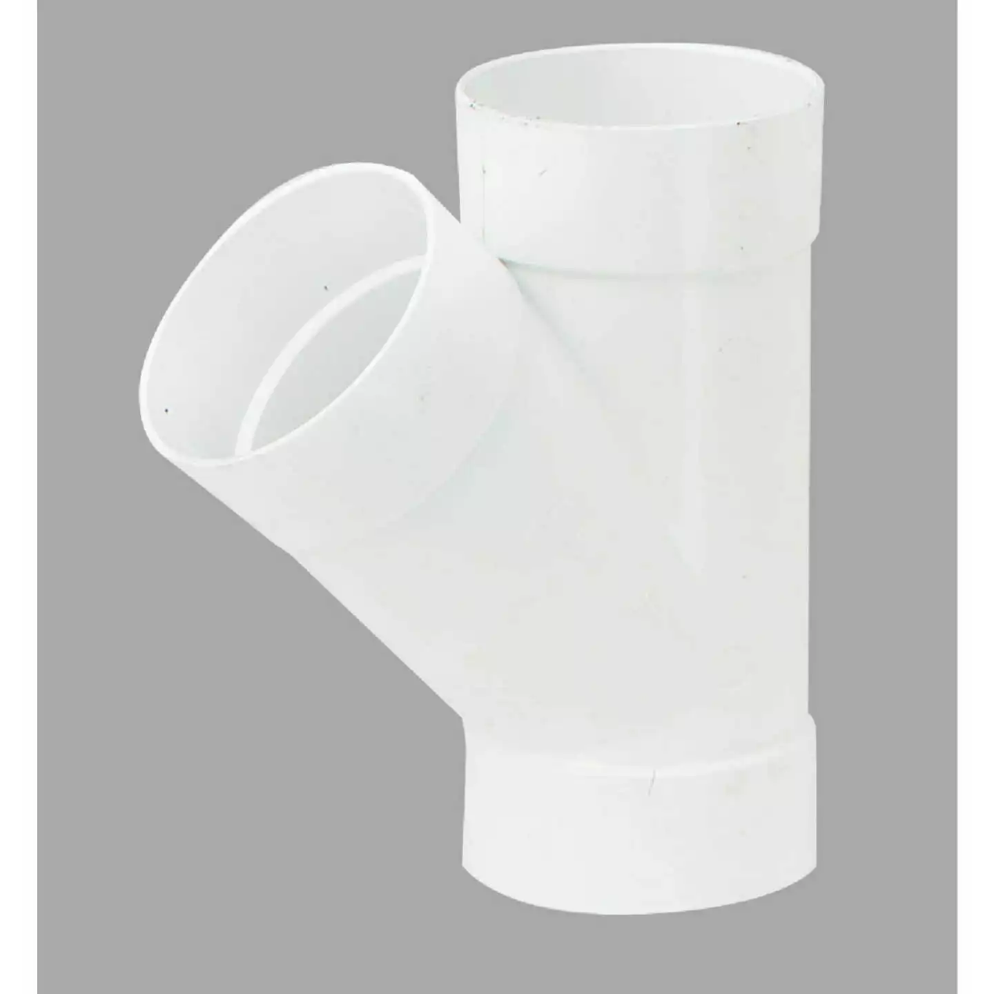 (45 deg. outlet). Used to connect horizontal branch line into straight sewer line in sewer lines, septic tank seepage systems, and perimeter drains. Meets ASTM 2729 or exceeds ASTM D2729.