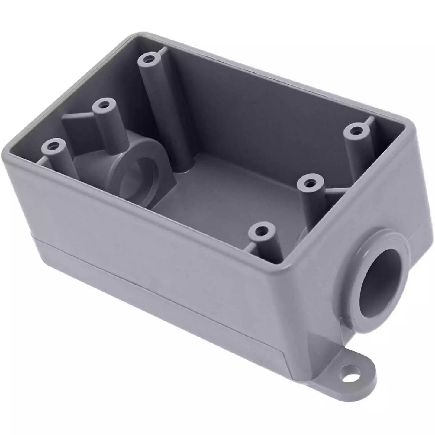 1-gang FSC box. Ideal to use when installing a switch or receptacle in a run of conduit. High impact and high tensile strength. PVC is resistant to external corrosion and pitting and will not rust. As a building material PVC offers outstanding fire performance characteristics. After years of exposure to direct sunlight, heat, and extreme weather, Kraloy PVC fittings retain their original properties. Resistant to a wide range of chemicals such as acids, alkalis or salt solutions. Resistant to fungi, bacterial action, rodents and termites, for a long and trouble-free life. All that is required to join your Kraloy fittings with PVC conduit is solvent cement.