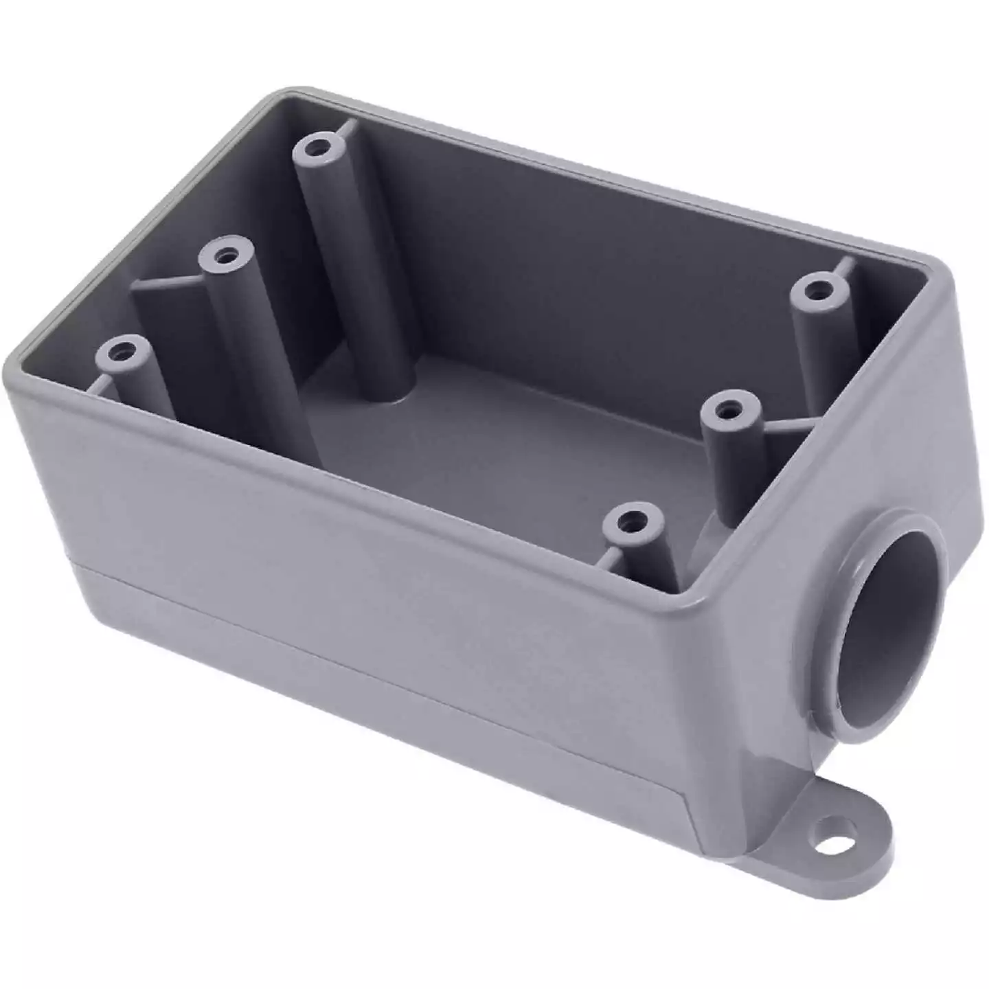 1-gang FDS box. Ideal to use at the end of a conduit run and when additional box capacity is required. For use with 1 In. conduit. High impact and high tensile strength. PVC is resistant to external corrosion and pitting and will not rust. As a building material PVC offers outstanding fire performance characteristics. After years of exposure to direct sunlight, heat, and extreme weather, Kraloy PVC fittings retain their original properties. Resistant to a wide range of chemicals such as acids, alkalis or salt solutions. Resistant to fungi, bacterial action, rodents and termites, for a long and trouble-free life. All that is required to join your Kraloy fittings with PVC conduit is solvent cement.